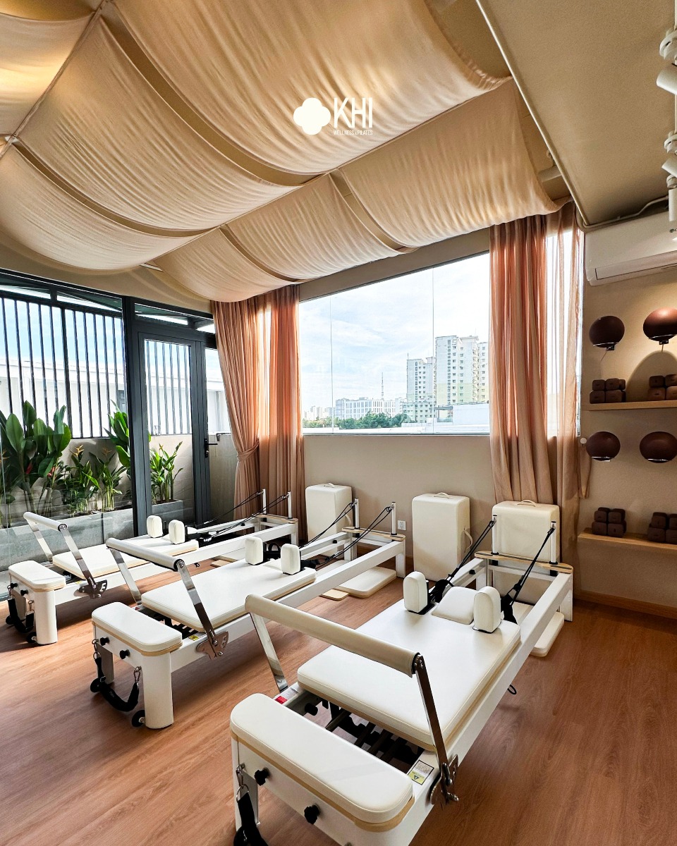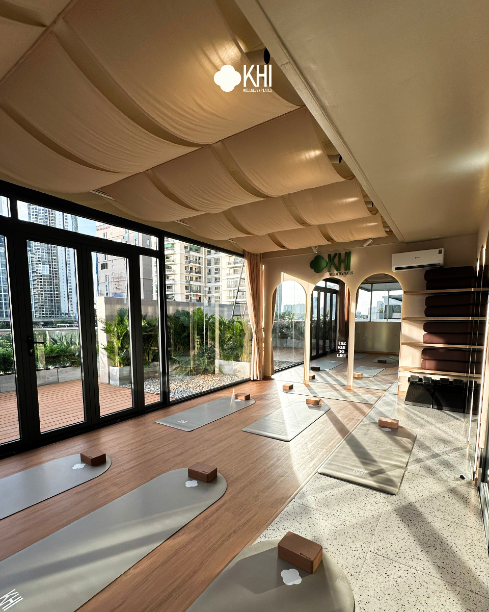 Không gian tập luyện tại KHI Wellness được thiết kế như một nơi trú ẩn dành cho thân – tâm – trí. Với ánh sáng tự nhiên, chất liệu ấm áp và bố cục tối giản, mỗi khu vực đều mang đến cảm giác thuần khiết và tĩnh lặng. Studio được trang bị đầy đủ máy Pilates hiện đại, khu Yoga thoáng đãng, rooftop kết nối với thiên nhiên và các phòng Energy Healing như Sauna, Thiền, Breathwork và Sound Bath. Môi trường yên tĩnh, sạch sẽ và được chăm chút tỉ mỉ giúp bạn tập trung hoàn toàn vào chuyển động, hơi thở và hành trình tái tạo năng lượng của mình.